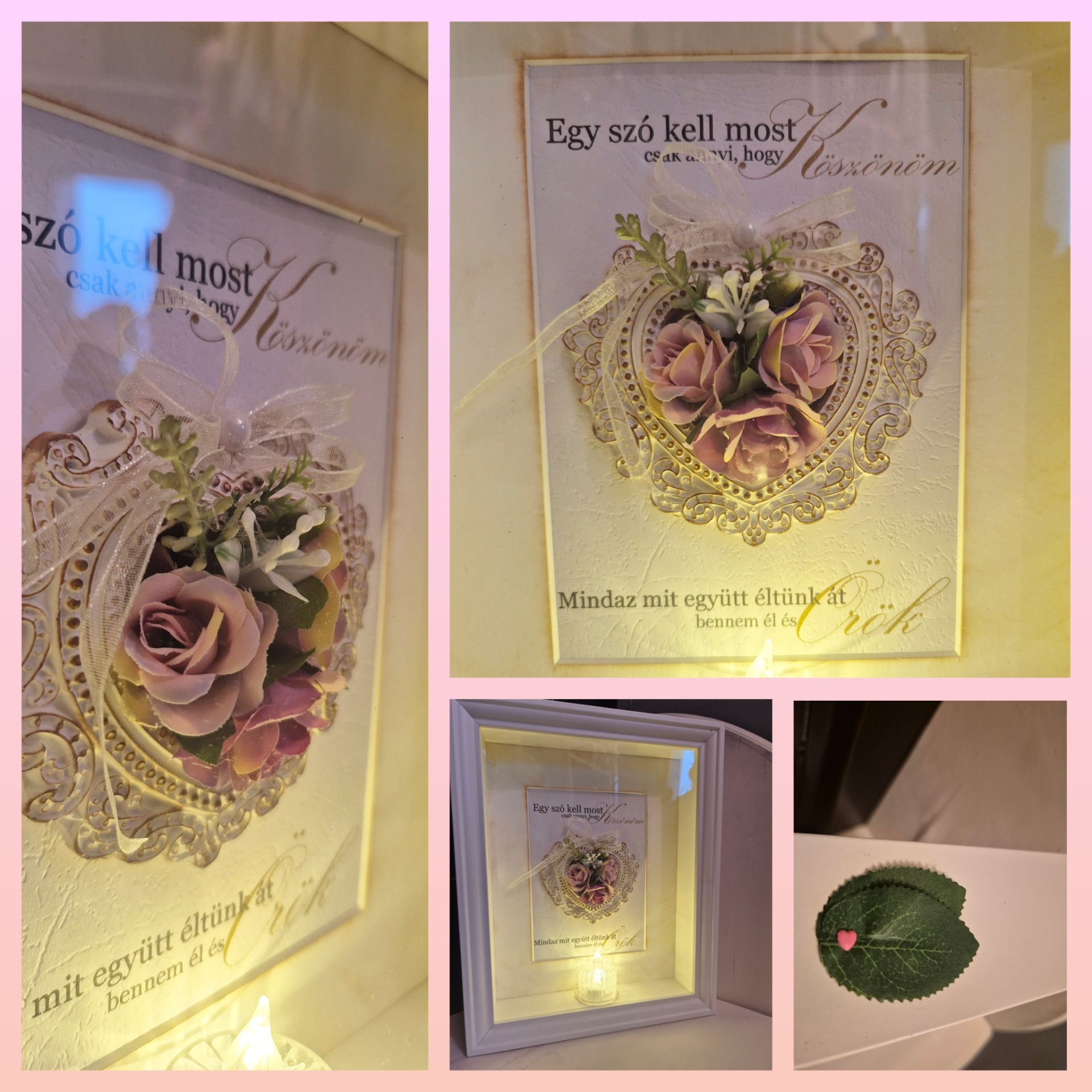 Köszönet képkeret szív, led mécsessel (E-4)