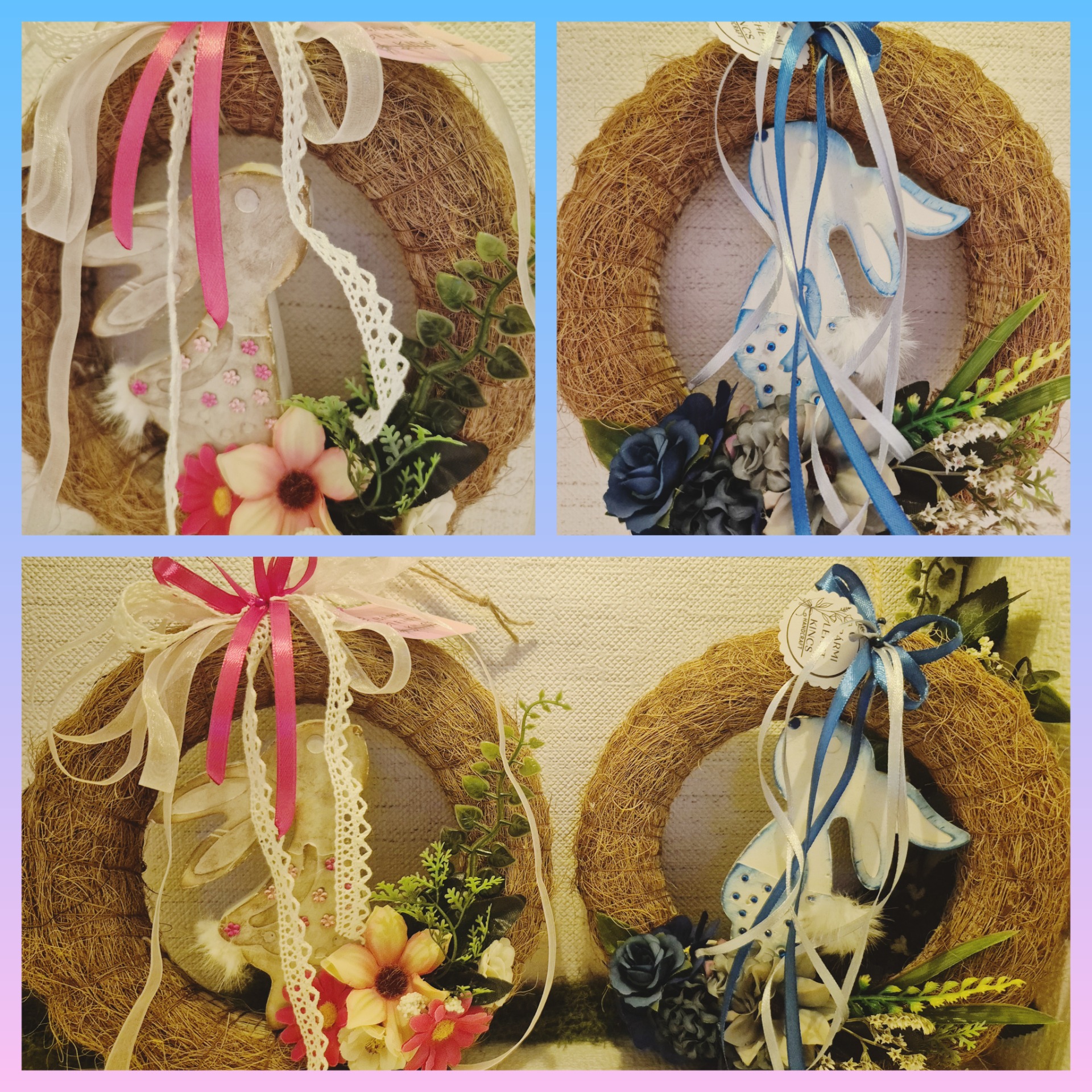 Méret: 20 cm-es koszorú alap (kislány nyuszis)